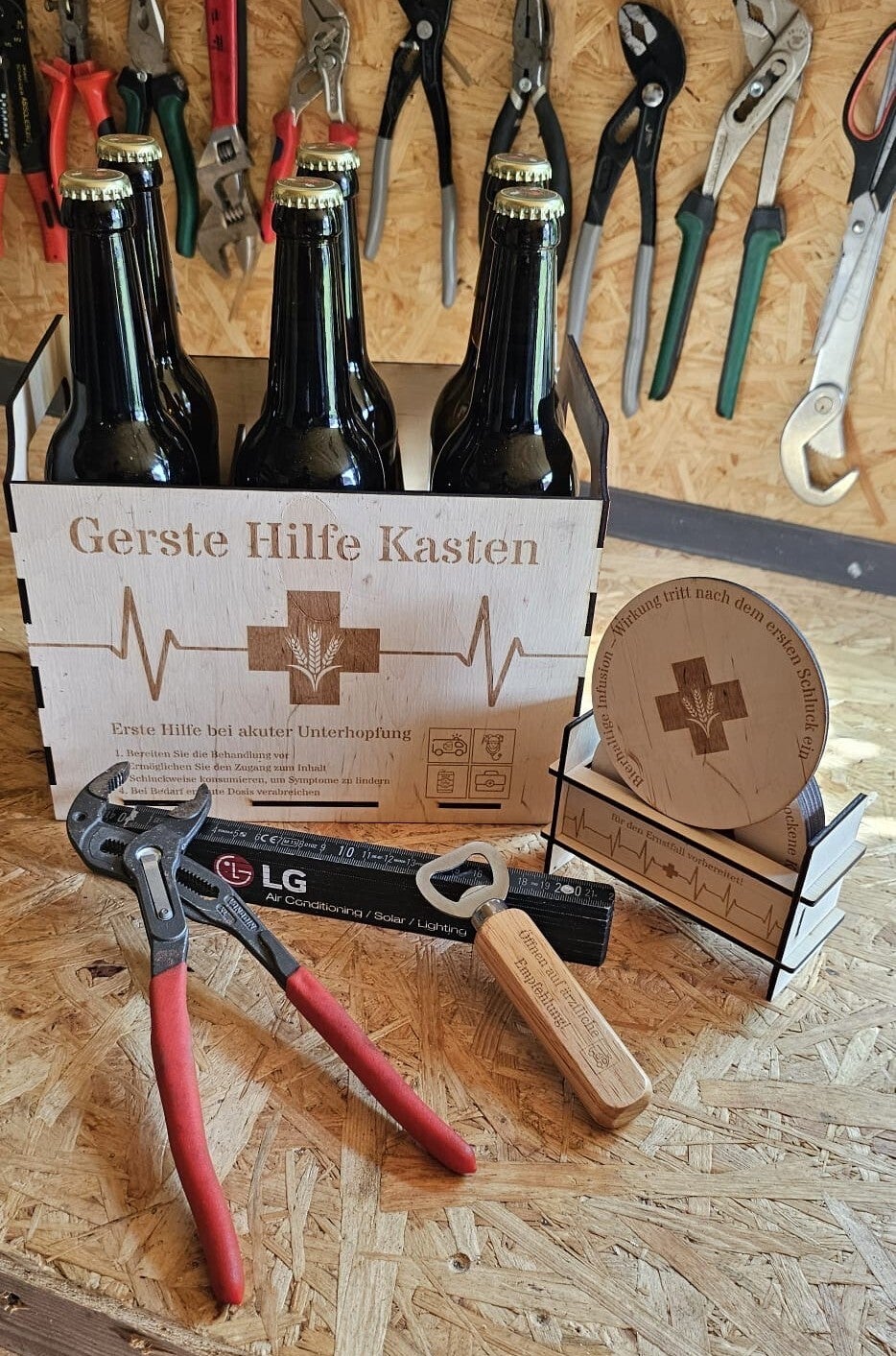 Ob als Geschenk zum Vatertag, für den nächsten Männerabend oder einfach für den eigenen Garten oder die Werkstatt: Dieses hochwertige Set aus naturbelassenem Birken- oder Lindenholz ist ein echter Hingucker mit praktischem Nutzen.