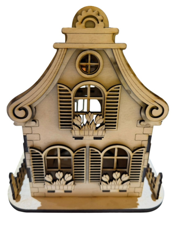 Durch das einfache Einsetzen eines LED-Teelichts sorgt es für eine warme, gemütliche Beleuchtung. Das Holz ist nach der Herstellung nicht versiegelt, wodurch der natürliche Charakter erhalten bleibt und sich das Haus auch ideal zum individuellen Bemalen oder Gestalten eignet.
